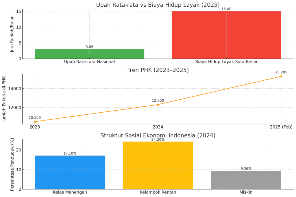Tekanan ekonomi diperparah oleh gelombang Pemutusan Hubungan Kerja (PHK). Pada Februari 2025, PHK tercatat 15.285 pekerja, tertinggi dalam dua tahun terakhir.